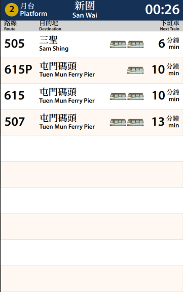 模擬港鐵輕鐵網絡中的直立式班次顯示屏只支援實時到站班次。